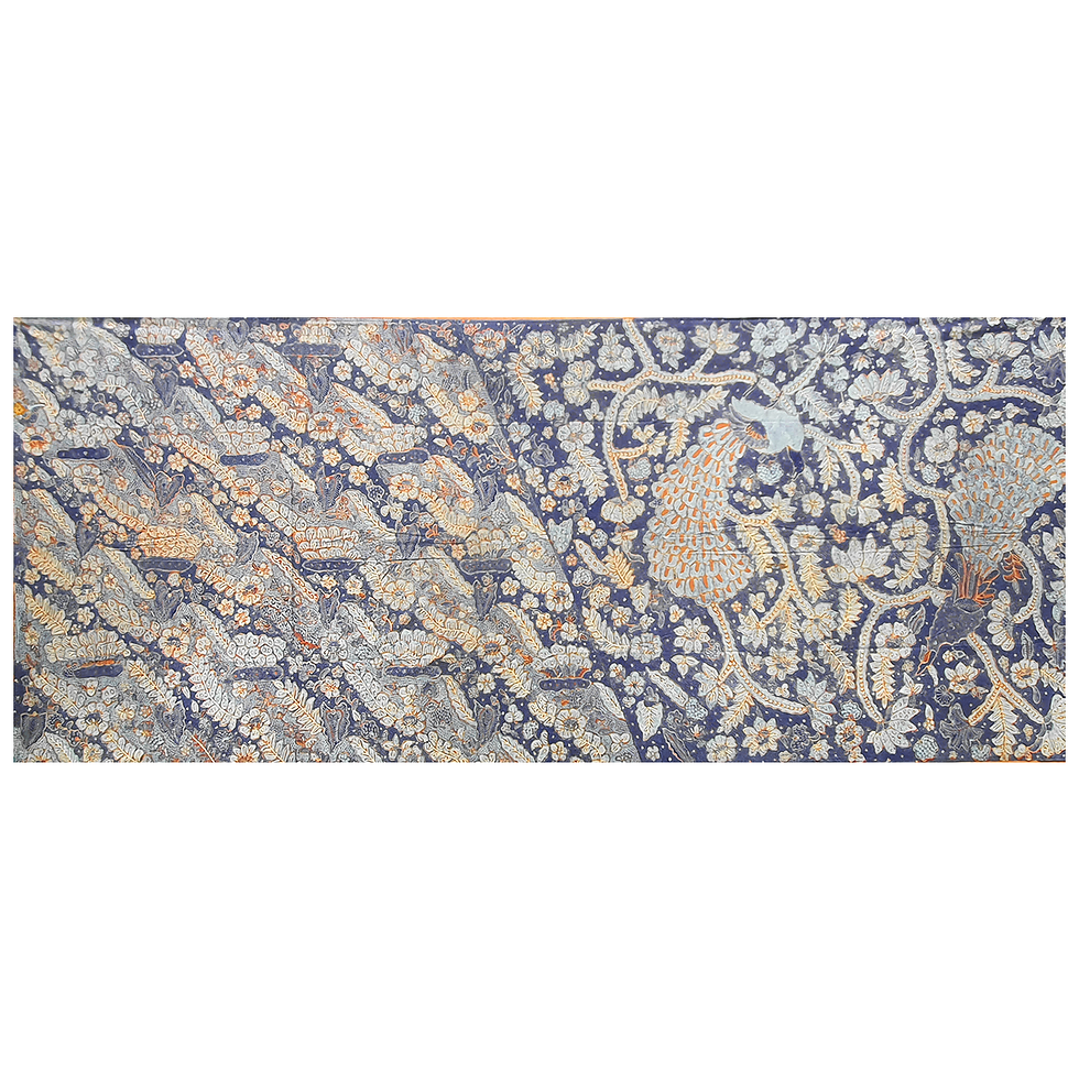 Discover the beauty and uniqueness of Batik Tulis, a handcrafted masterpiece from Indonesia. Unlike machine-made fabrics, each piece of Batik Tulis is individually created by skilled artisans, ensuring no two pieces are exactly alike. This handmade nature results in slight imperfections that add to the charm and authenticity of the fabric. Many of our antique Batik pieces have been cherished and used, while others have remained untouched over the years. Due to their age and the use of natural dyes, some slight discoloration may be present. This is a testament to their history and craftsmanship, not a flaw or defect. Embrace the heritage and elegance of Batik Tulis, and bring a piece of Indonesia's rich cultural history into your home.
